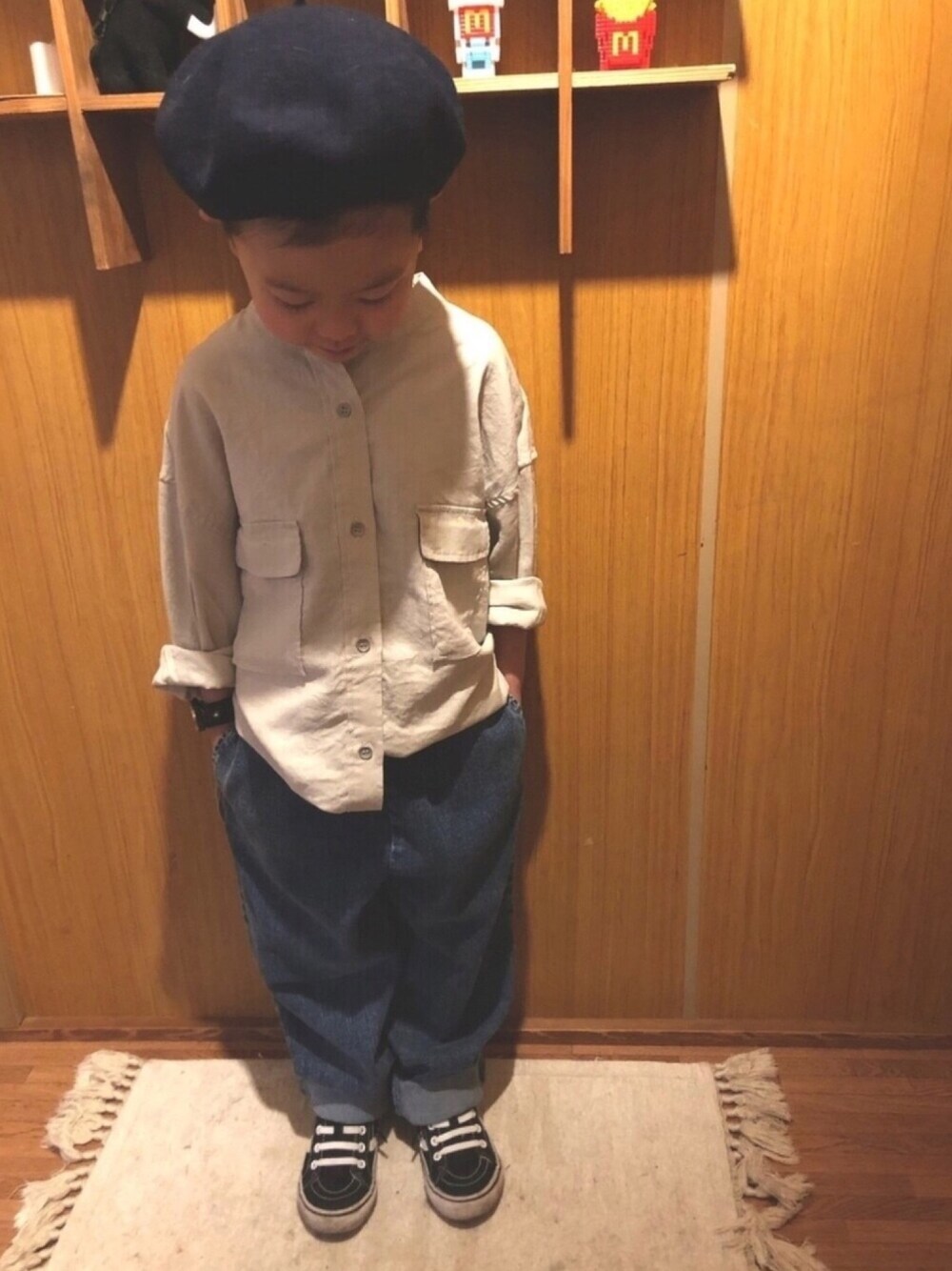 基平のシャツ/ブラウス「【KIDS】レーヨンリネンバンドカラーシャツ/877968」を使ったコーディネート