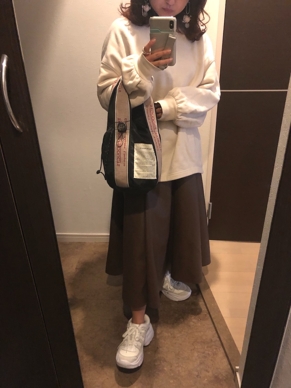 maaのハンドバッグ「【一部WEB限定】THEATRE PRODUCTS × FREAK'S STORE/シアタープロダクツ 別注ジャガードテープ巾着バッグ」を使ったコーディネート
