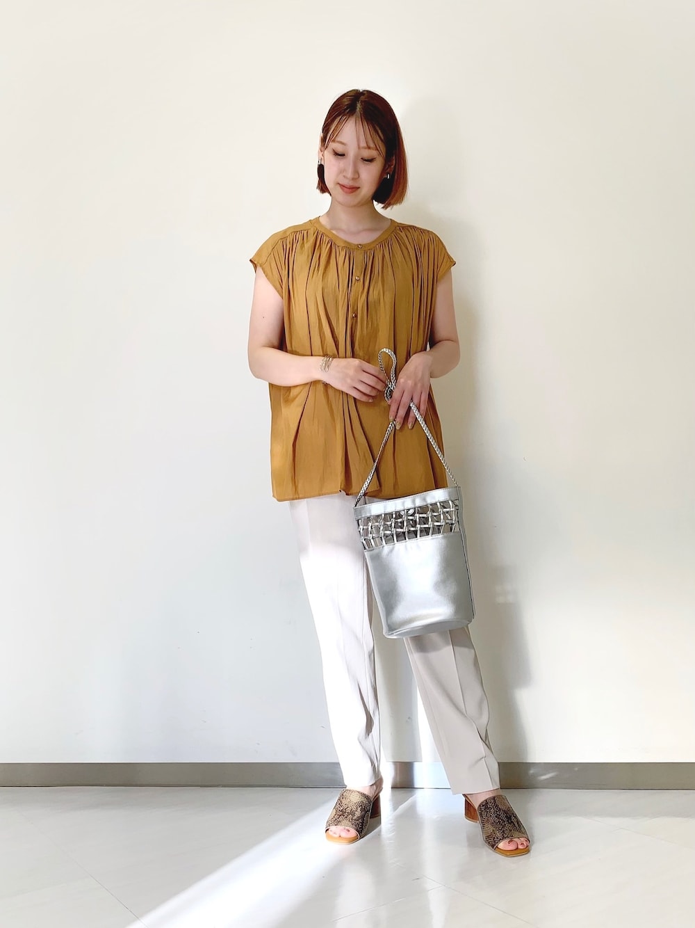 人気の2wayギャザーブラウスを使用したスタイリングです。