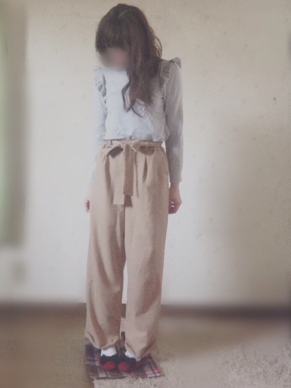 miiiのスラックス「共リボンワイドパンツ」を使ったコーディネート