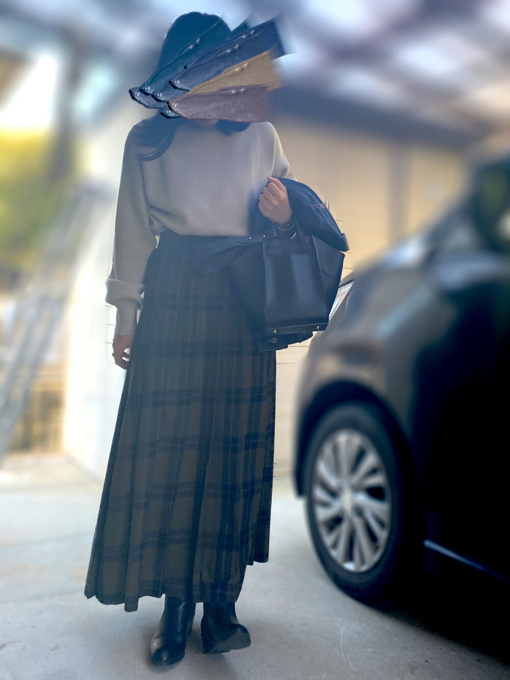 ▼2021.11.10 最近光の加減がうまくいかず 写真が上手く撮れない😮💨😮💨 GUのスウェットライクハイネックセーターもっといい色なのに😮💨😮💨 カーキのチェックスカート着回し🙆♀️