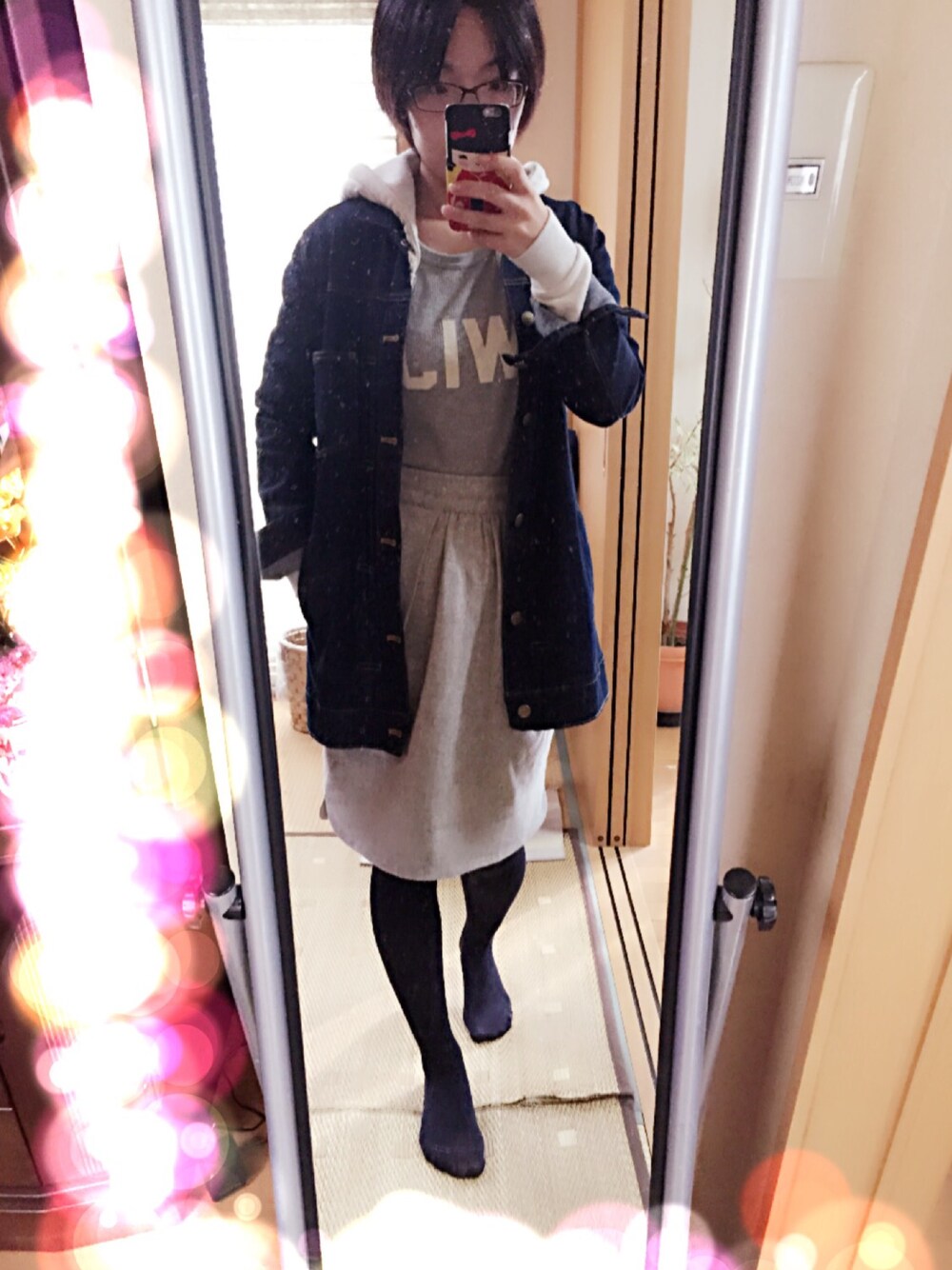 秋晴れですが、東北は寒いです🌀🌀 今日は早起きできた😊🌟 ジージャンにパーカーの組み合わせ好きです😽