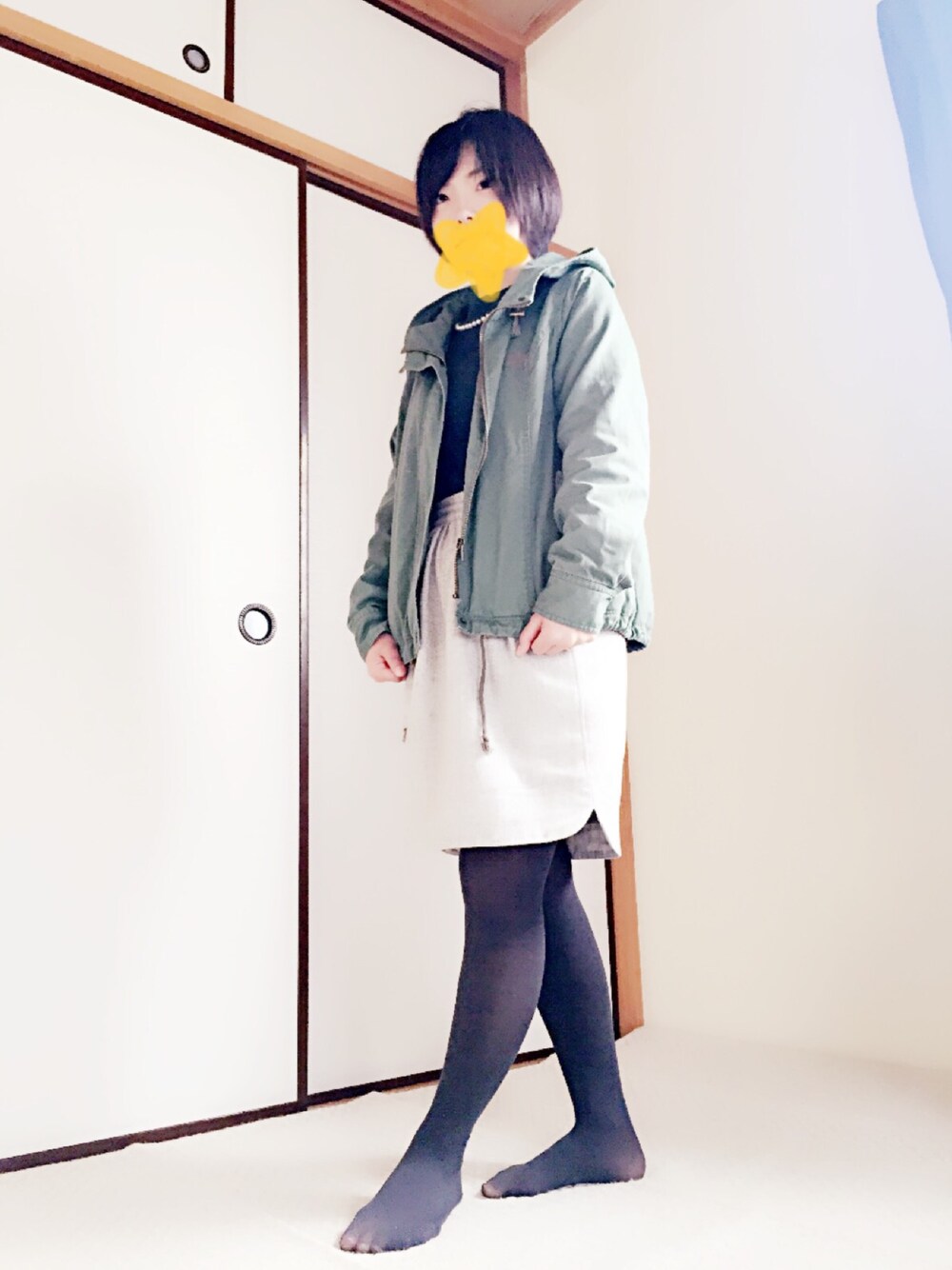 雨模様。。 こんな日はフード付きのショートミリタリーを着ます。