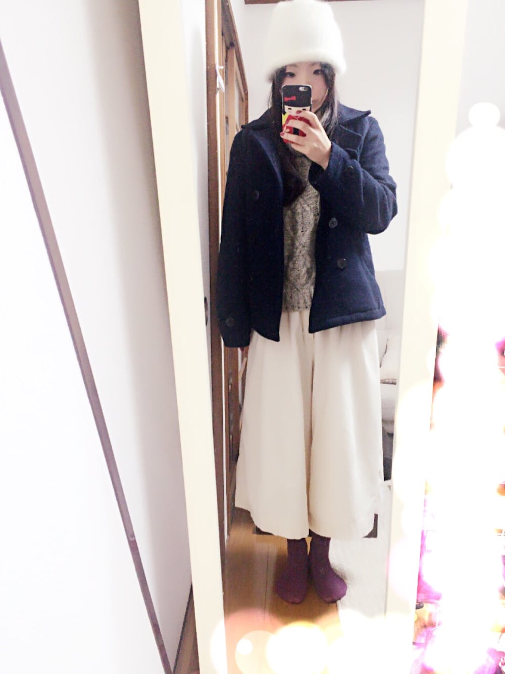 アウターはピーコート。