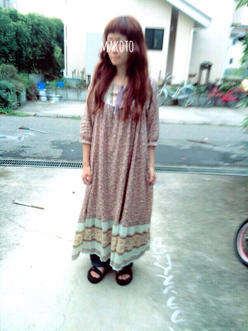 古着ワンピを ただ着ただけ。 髪の毛も何もせず。 ただ、下に履いたパンツは気にした。 細身じゃないやつ✡
