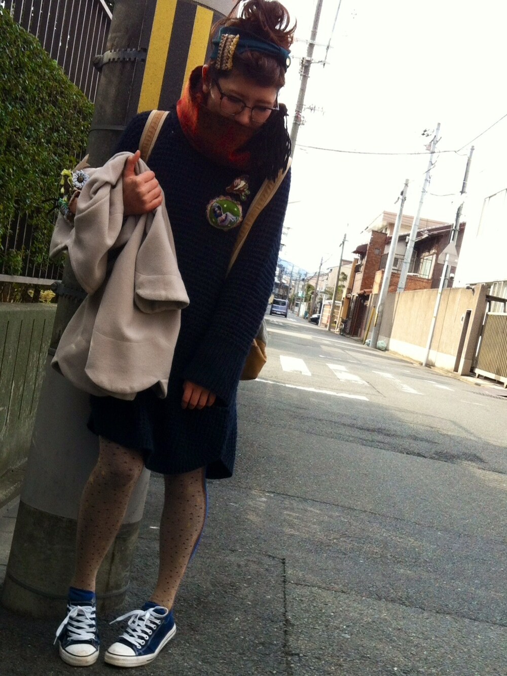guのニットワンピ、あえてLサイズを購入。 コート抜きにしたら全身で3000円しかかかってない、超プチプラコーデ…!