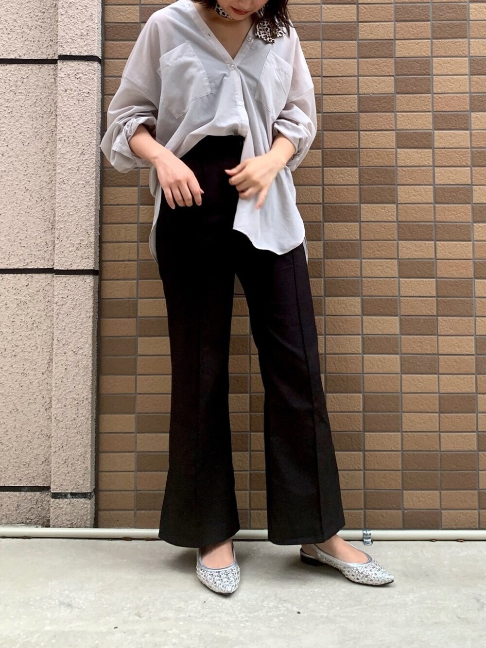 シャツとパンツだけのコーデですが、片方だけシャツをインしてシンプルすぎない着方も出来ます☺︎