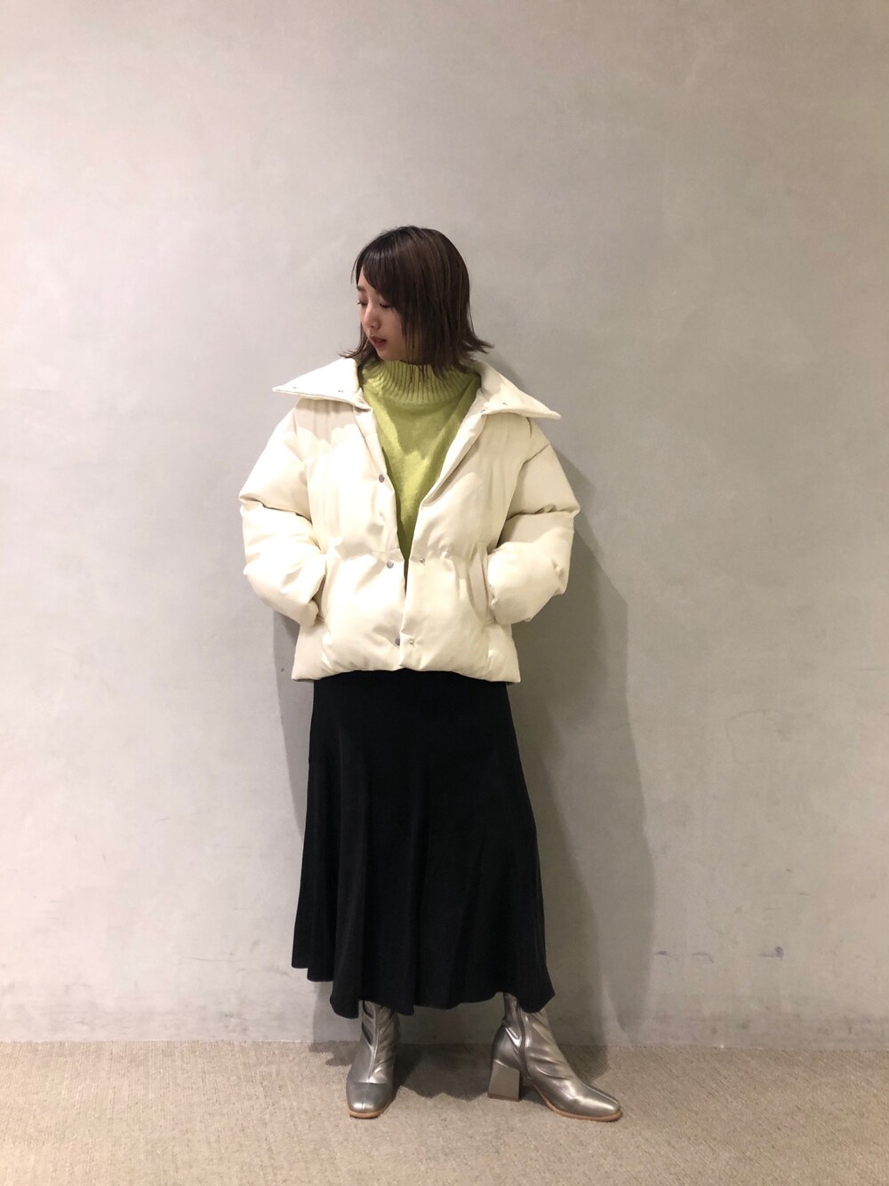 ニットがカラーなので、アウターとスカートはモノトーンでまとめました。 ブルゾンはボリュームがあるのでマーメイドスカート合わせに。 ブーツはブロンズにしておしゃれ感UP◎ レザーの中綿ブルゾンはミドル丈なのでスカートとの相性◎です。