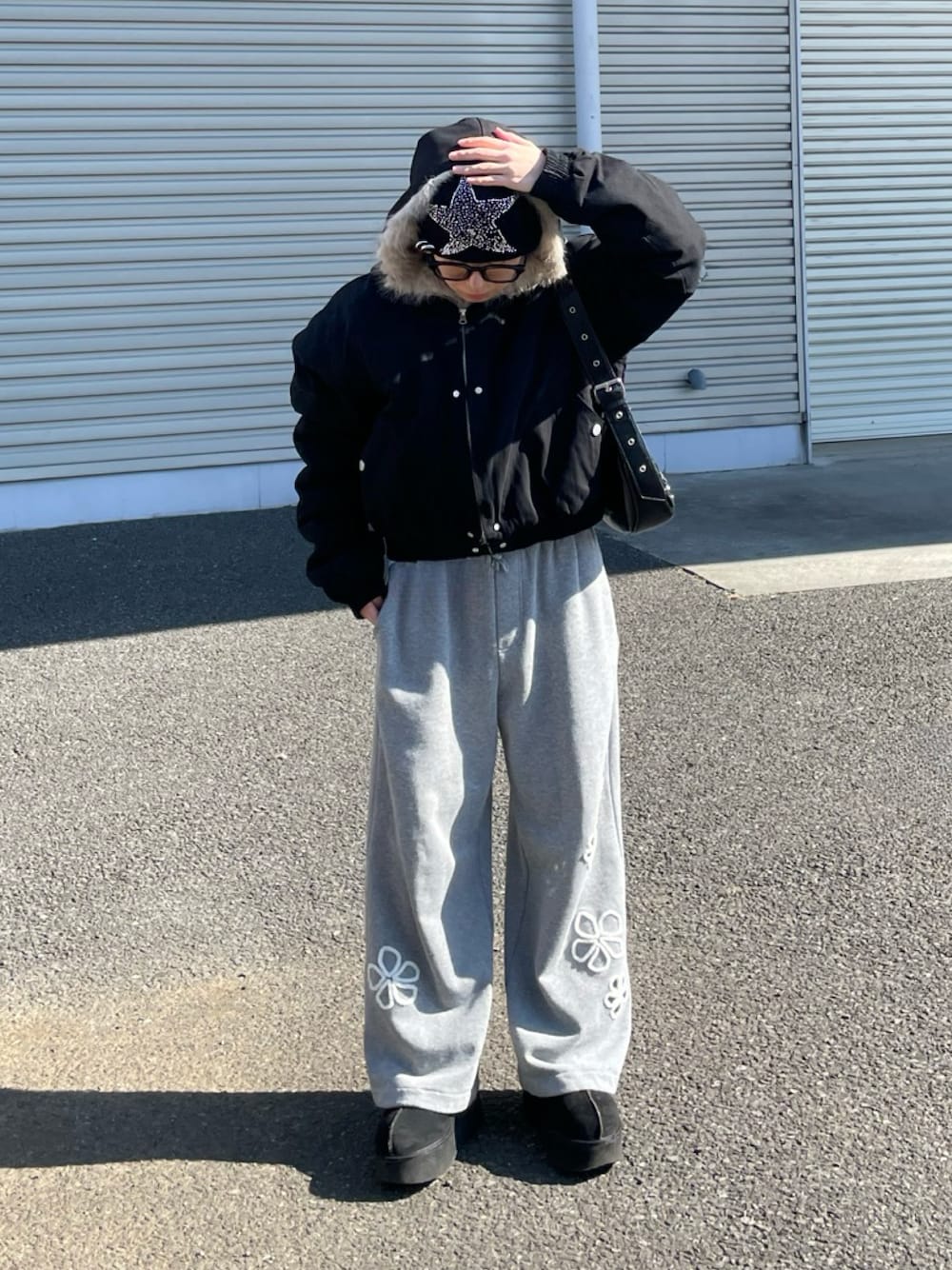 マーのスウェットパンツ「大人の遊び心が光る。フラワーサガラ刺繍くり抜き裏毛スウェットワイドパンツ」を使ったコーディネート