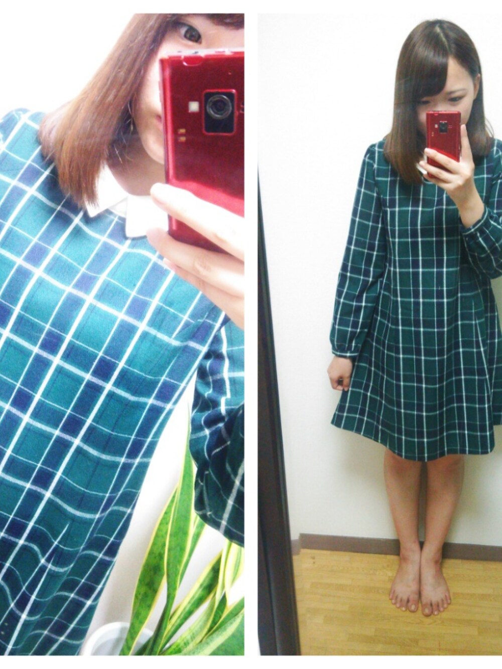 おにゅうのワンピースです これにベージュのカーディガンを肩掛けすると可愛いです もう少し寒くなってきたらブーツと合わせたいと思います