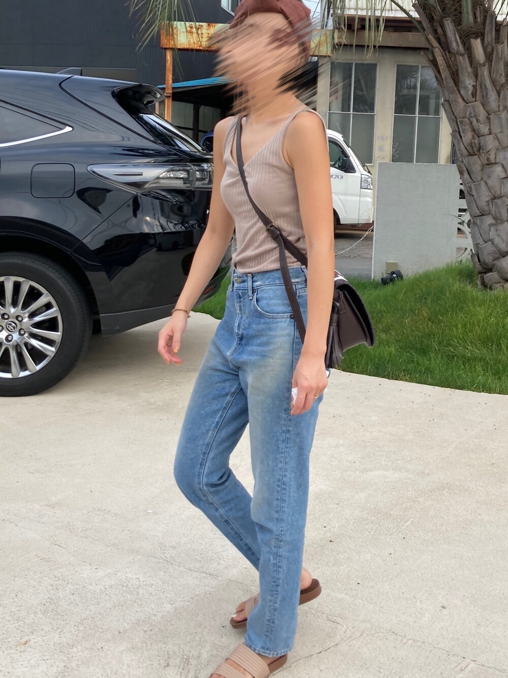 まちょのデニムパンツ「ハイウエストダメージスリムデニム」を使ったコーディネート