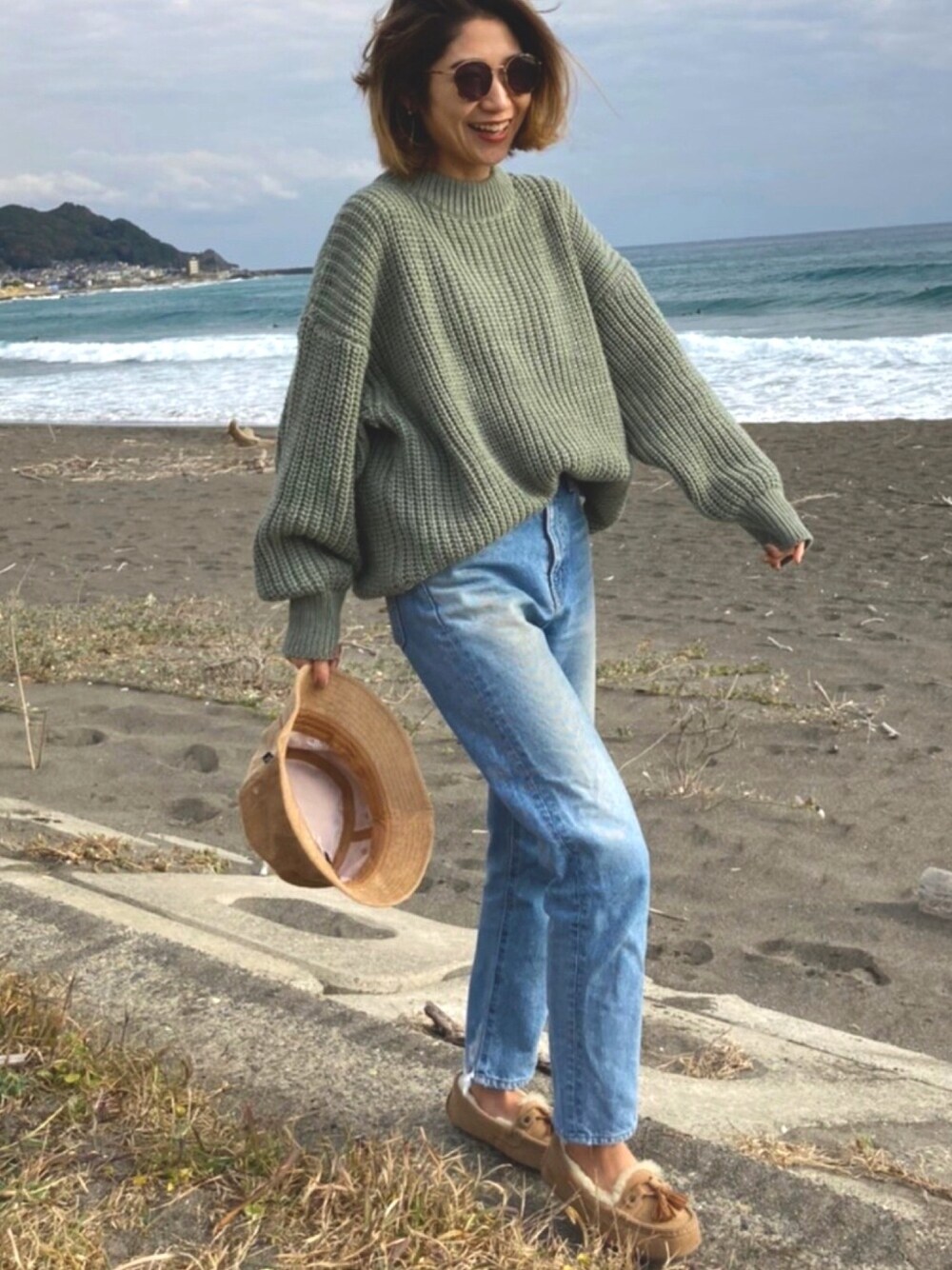 まちょのニット/セーター「ざっくり片畔ニットBIGチュニック *」を使ったコーディネート