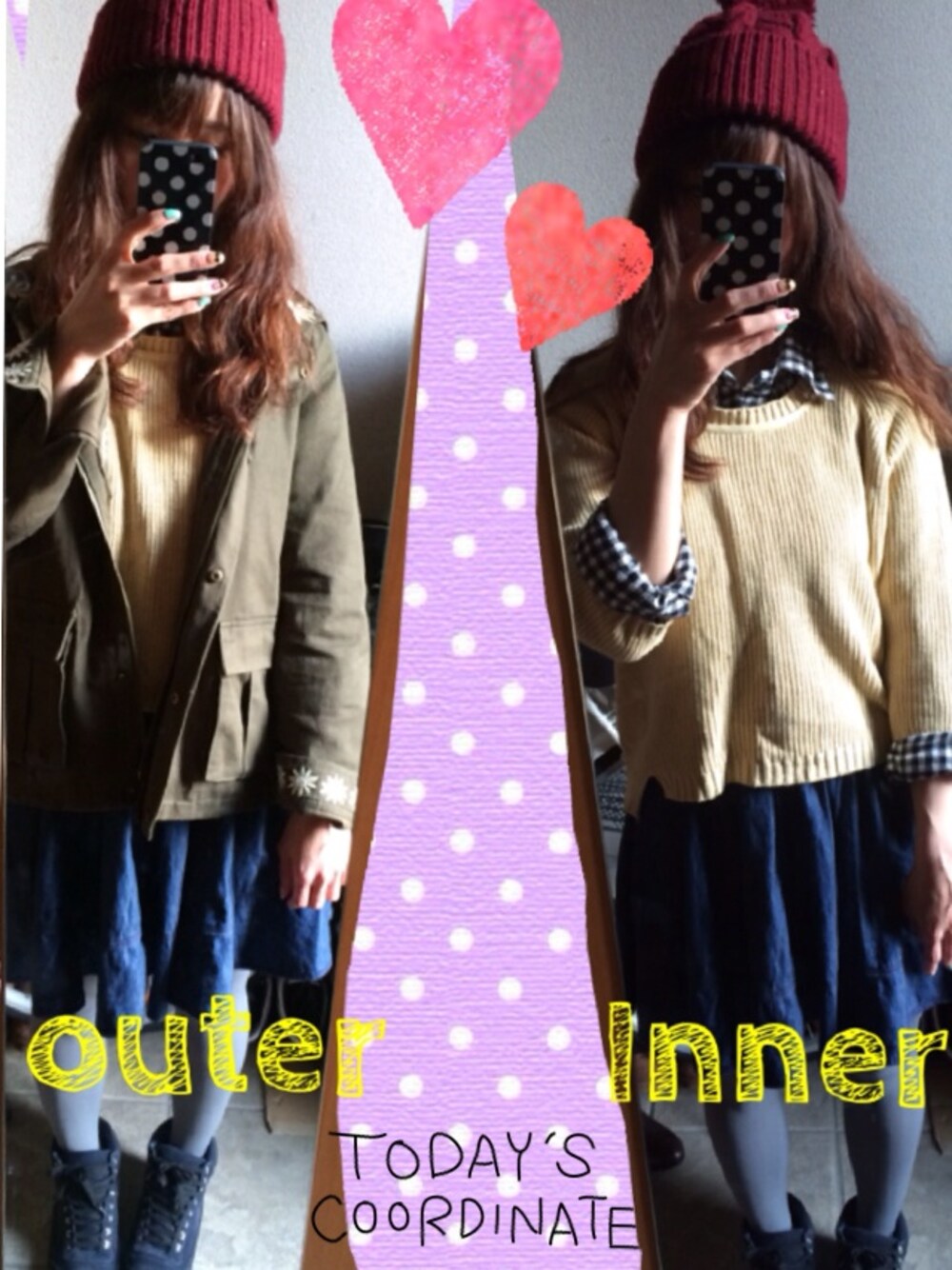 アウター◎ParAvion チェックシャツ◎UNIQLO ニット◎w closet スカート◎earth 靴◎ParAvion