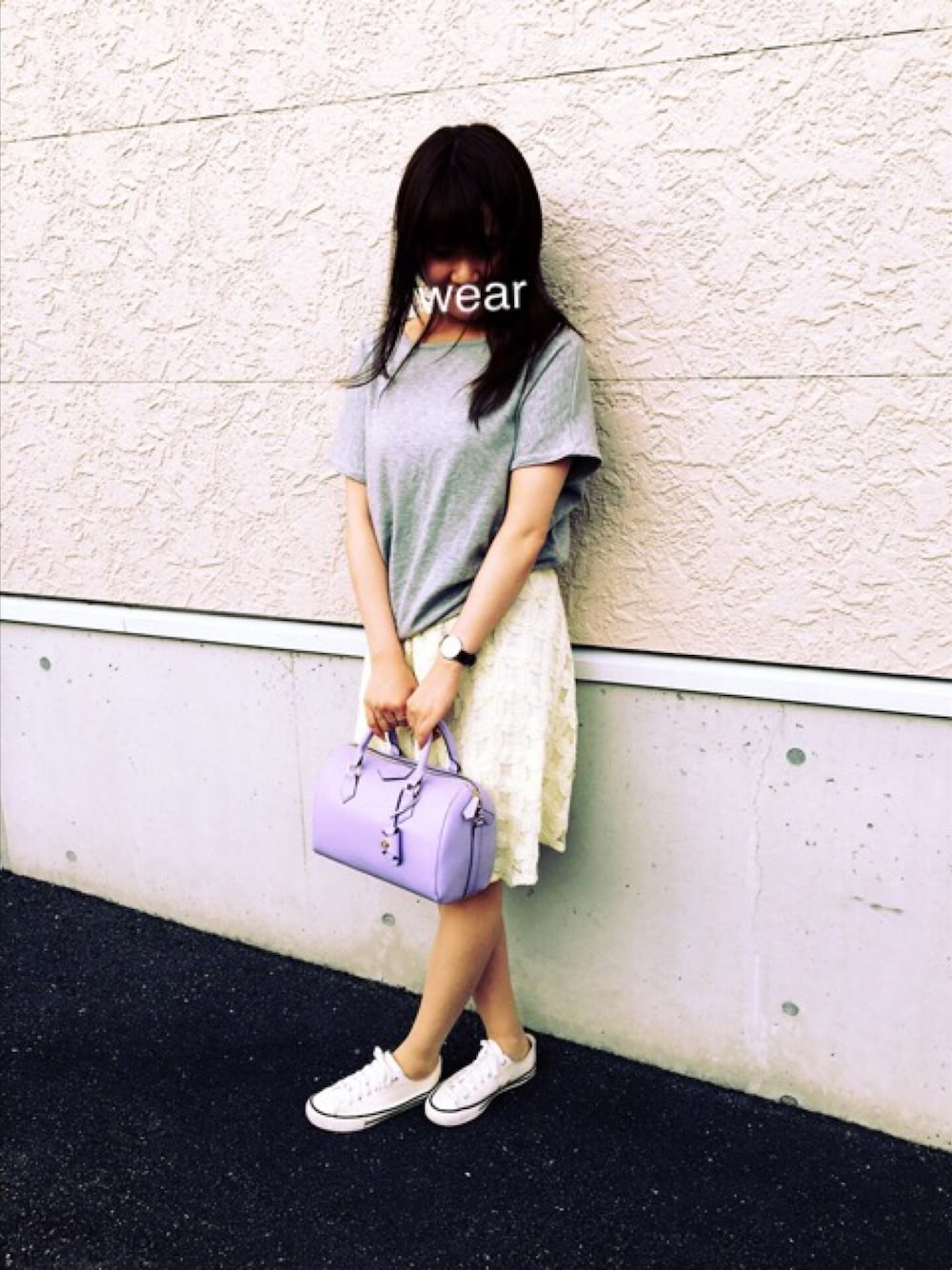今日は夏日だけどイエロー×ラベンダーで春らしく! 朝くるくるに巻いた髪が湿気ですとーんってなって少しがっかり。