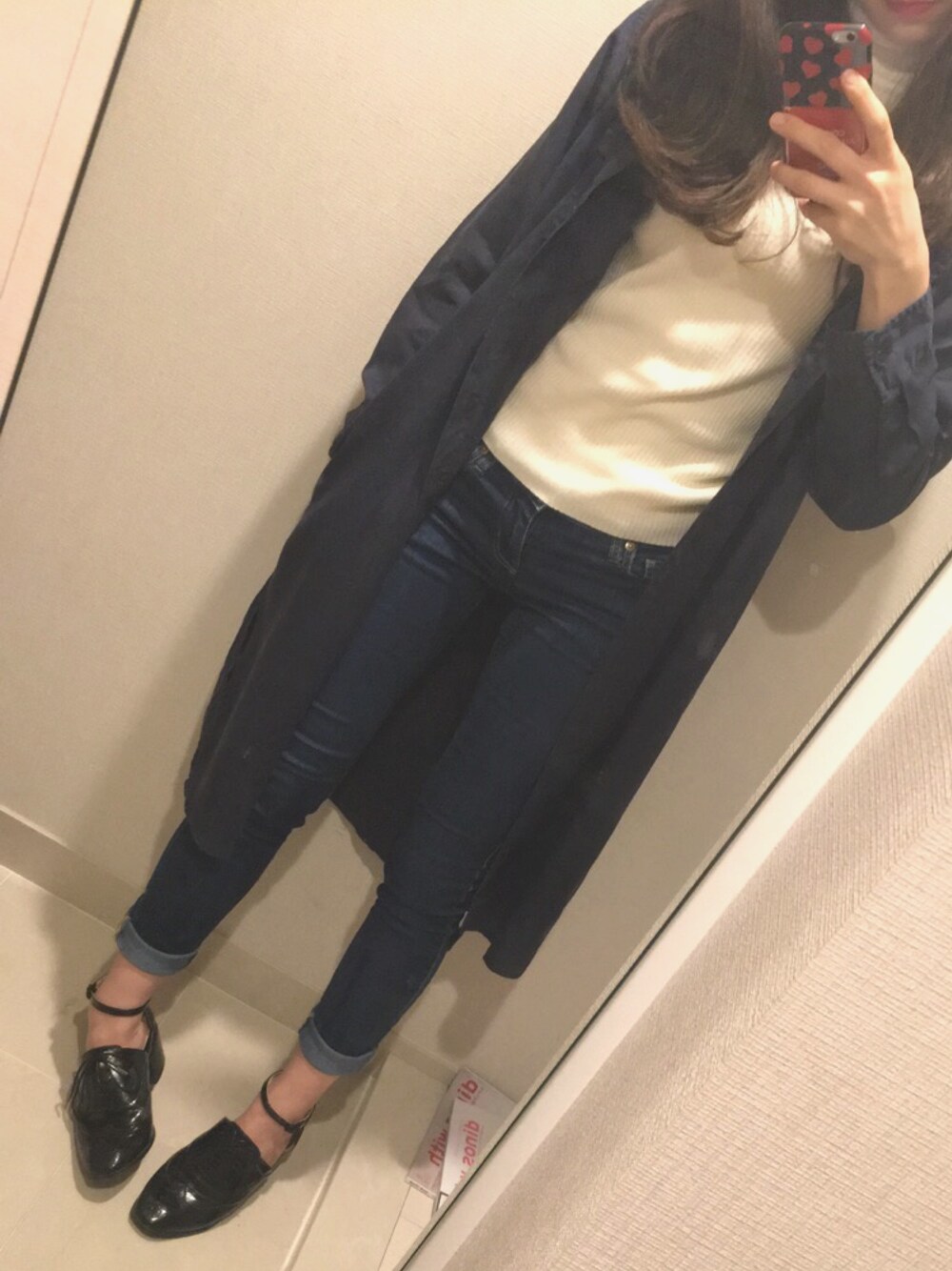 学校だからゆるゆるUNIQLO GUコーデ とりあえず長いものを上に羽織ればそれっぽくなるかなーっていう考え☝🏻️ ちょっと寒いから久しぶりに長袖のリブニットを着てみました☃️