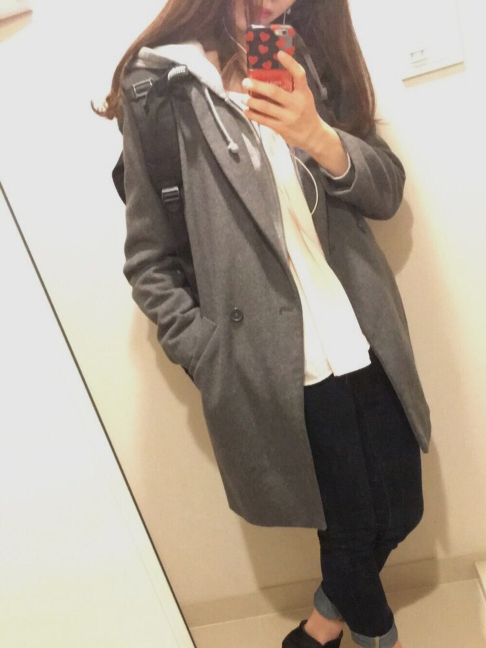 寒いけどニットはもうしまっちゃったから、コートにパーカーをレイヤード! 寒さ調節できるから季節の変わり目は重ね着が便利🌟 今日も学校なのでパーカーにデニムでゆるゆるコーデでする