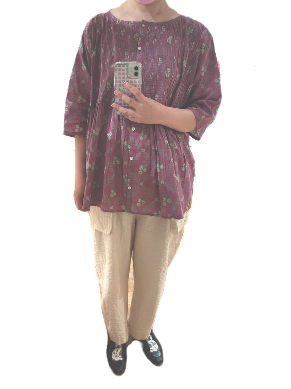 Maachaのシャツ/ブラウス「花モチーフ柄ブロックプリントブラウス」を使ったコーディネート