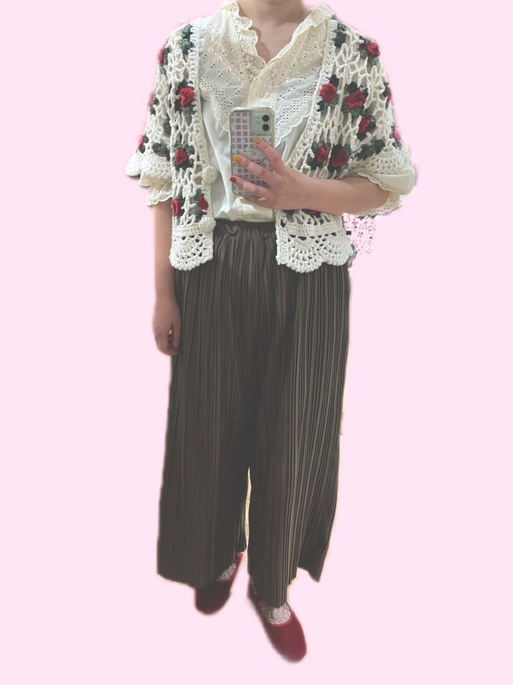 外ではちょうどよかったけど 暑くて仕事中脱ぎ捨てたカーデ。。 案の定 メリーのグランマニットシリーズ 大好き🙂😌
