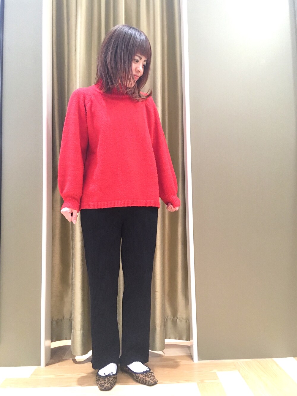 赤ニット、パンツ合わせver.☃️✨ レオパードでワンポイント🙆♀️ ピアスもレオパードでした☺️✨ 作っていただいたやつ✨可愛くて😭◎
