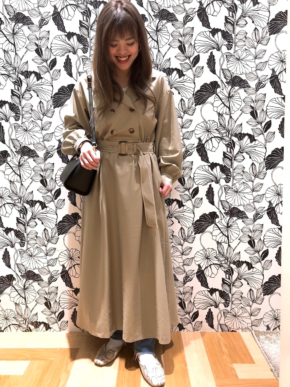 トレンチワンピース👗 ベージュも可愛い✨ 1枚でおしゃれなアイテムです✨ 今回はデニムと合わせてカジュアルに!