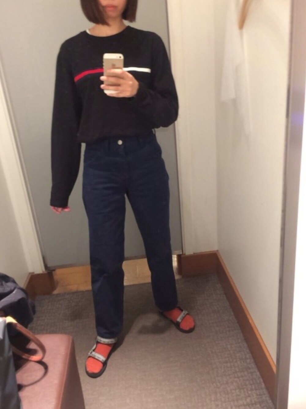 今日はサンダルを履いてみましたが、このラクチンな感じを味わうとダメですね。。笑 (あ、ちなみにこの撮影した試着室は土足で元々入るとこだったので履いた状態です🙇♀️)