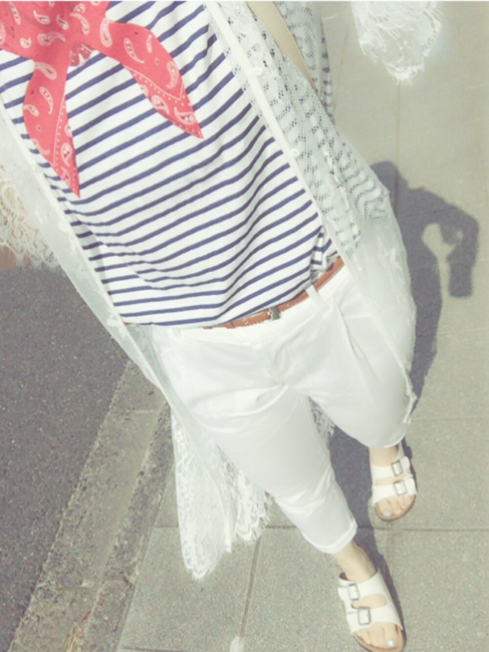 m a y u .のカーディガン/ボレロ「レースロングカーディガン」を使ったコーディネート