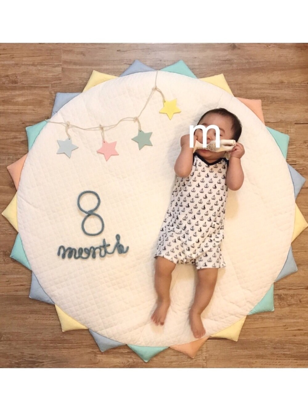 息子 8ヶ月になりました👶🏻 8月は、ずり這いに始まり、歯が生えて、人見知りがはじまり、後追いが始まり、寝返り返りも出来るようになりました💮 成長に驚く1ヶ月でした☺︎ 夏の終わりは夏らしいお洋服で。 ユニクロのロンパース、メルカリで昨年ものとかが新品で出ていたりして、これもメルカリで見つけたもの⛵️柄も色合いも気に入ってるんだけど、毎日冷房の効いた快適空間にしているのでノースリーブはなかなか出番がありませんでした😢