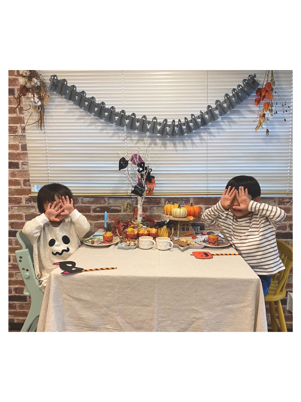 季節はずれですみません😂 2021年のおうちハロウィン🎃👻🧹🧙♀️ 次男はお下がりのハンドメイドのおばけちゃん服。 お兄ちゃんはもう仮装とかしてくれません😢