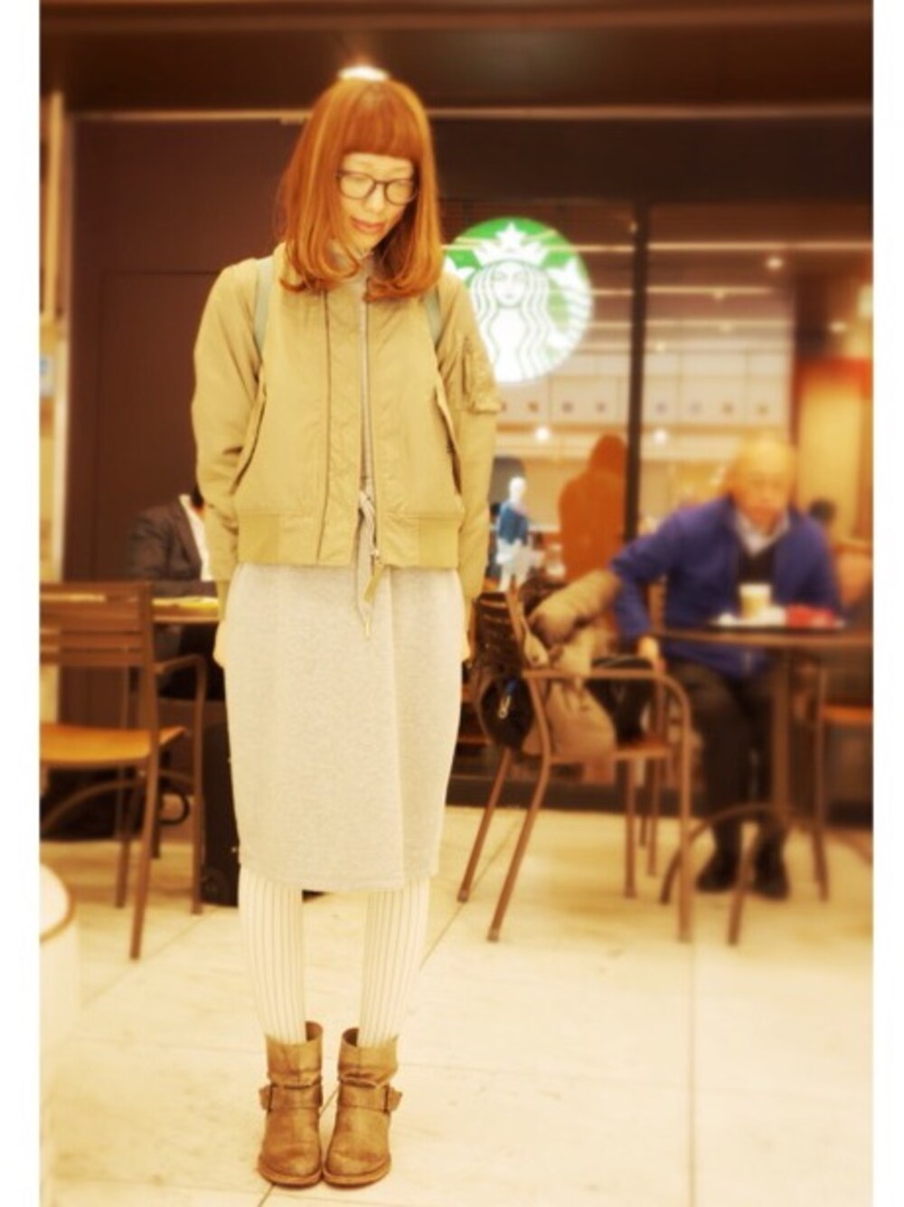 先々週 京都と大阪に行った時のコーディネート。 動きやすく。 髪の毛が退色してしましましてます。 アウター:LOWRYS FARM インナー:DHOLIC ワンピース:GU タイツ:靴下屋 バックパック:KANKEN メガネ:GU 関係のないおじさんが写っちゃいました。おじさんすみません。