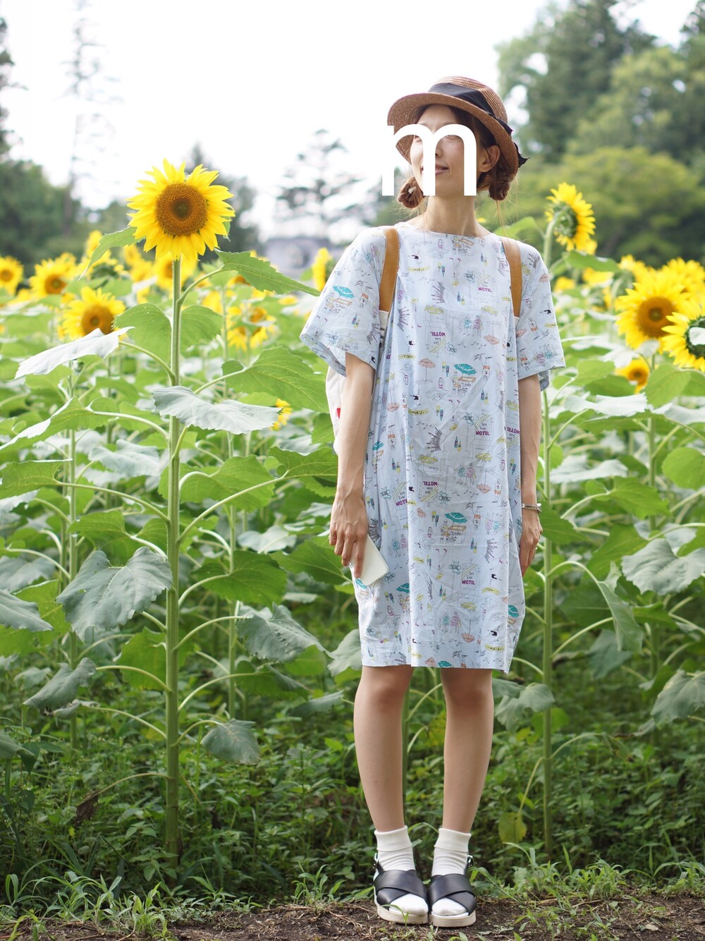 帰省中 お天気ぐずぐずでしたがこの日は晴れて ひまわり畑に☺︎ きれいでしたー。 ワンピースは前にも着ていたもの。お気に入りです。 私の母にも彼のお母さんにも「それ 作ったの?」て聞かれました。笑