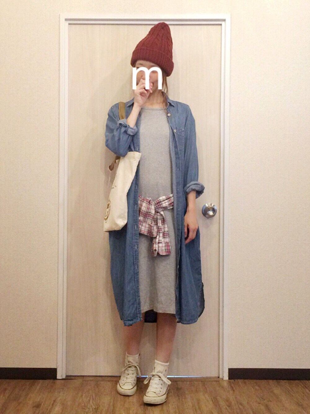 ma-chiのシャツワンピース「デニムマキシシャツ」を使ったコーディネート