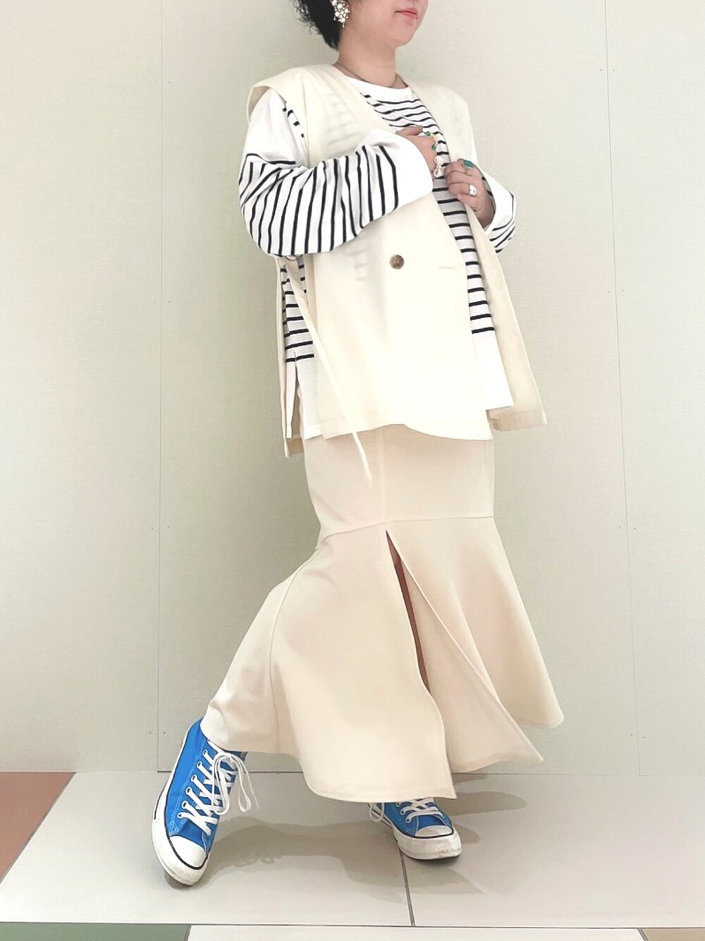 ♡ スリット入りマーメイドスカートは Mサイズ着用🤍 ストレッチが効いてるから履き心地よい! Instagram▶︎▶︎@maaaco_olive