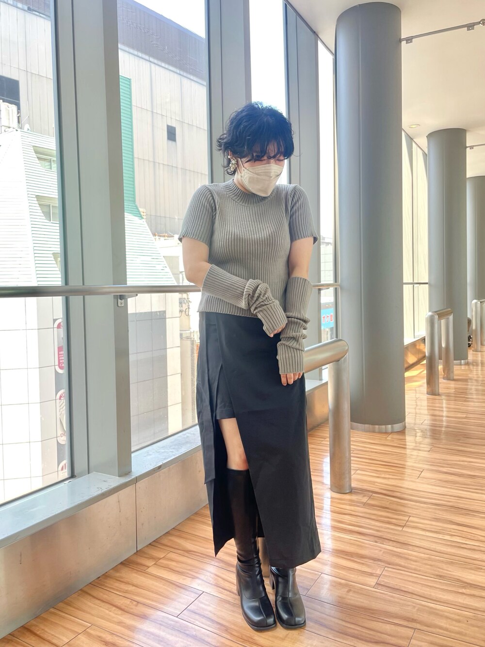 maicoのニット/セーター「【WEB限定カラー有】アームウォーマー付ワイドリブニット」を使ったコーディネート