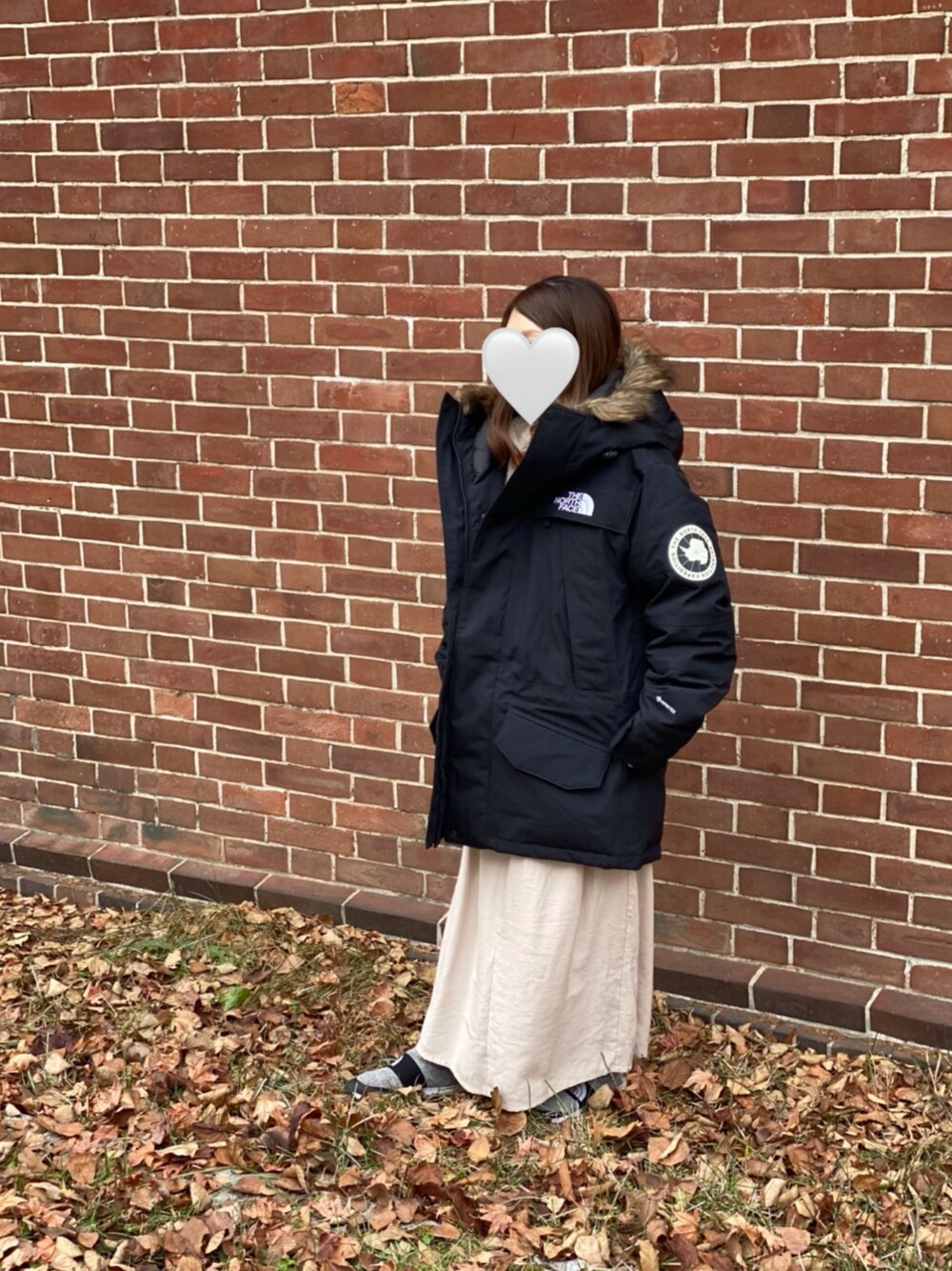 North Faceの アンタークティカパーカーです❤︎ かなりオーバーサイズで着てます。