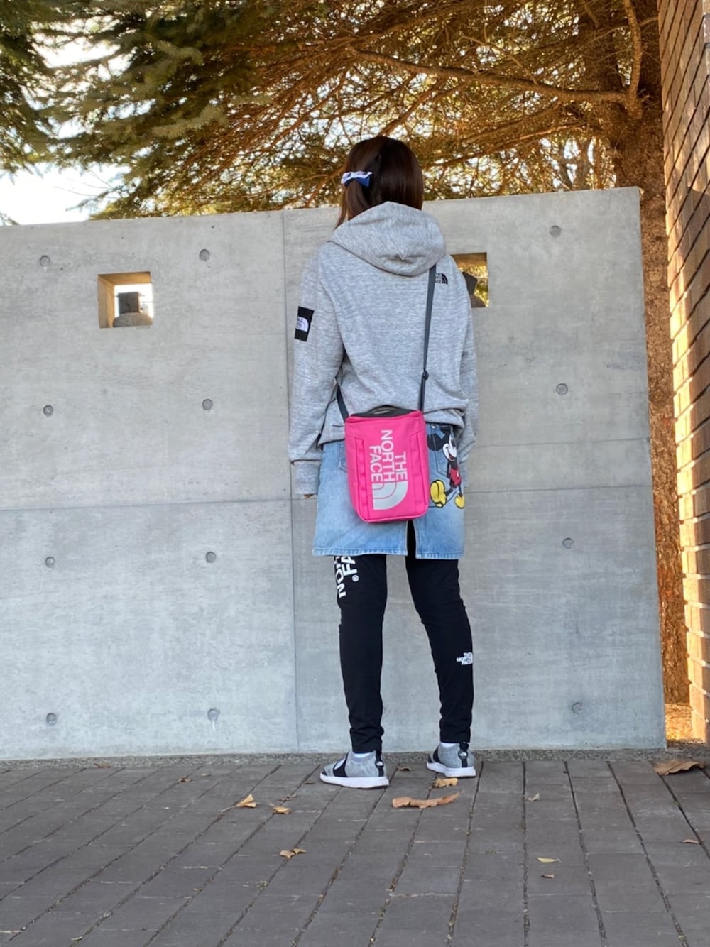 ノースフェイス レギンスコーデです𓂃 𓈒𓏸 古着のミッキーデニムスカートも お気に入り⸜❤︎⸝
