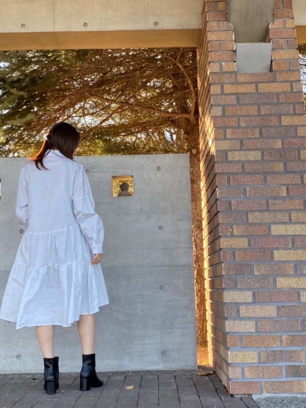 白のシャツワンピースです☺︎ 黒のショートブーツと 合わせてみました❤︎