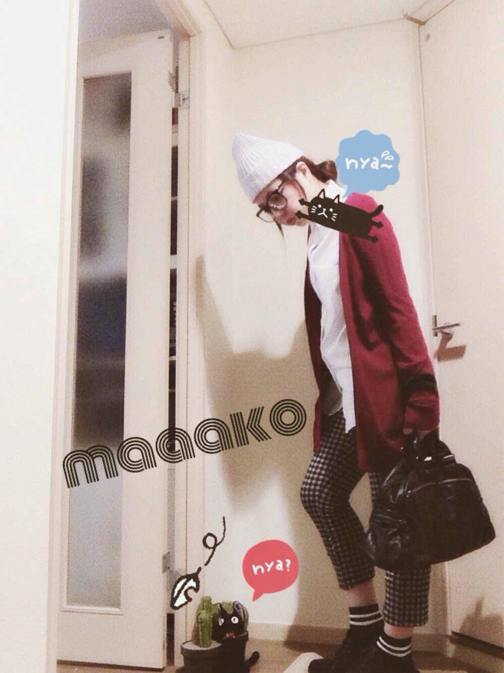 ラスト。 頭同じで3パターン。 1番初めに投稿した 黒のロングカーディガンの 色違い。 このニット帽とこの髪型もお初。 wear見て勉強してなかったら なかったなー。 連投すみませんでした(。-_-。)