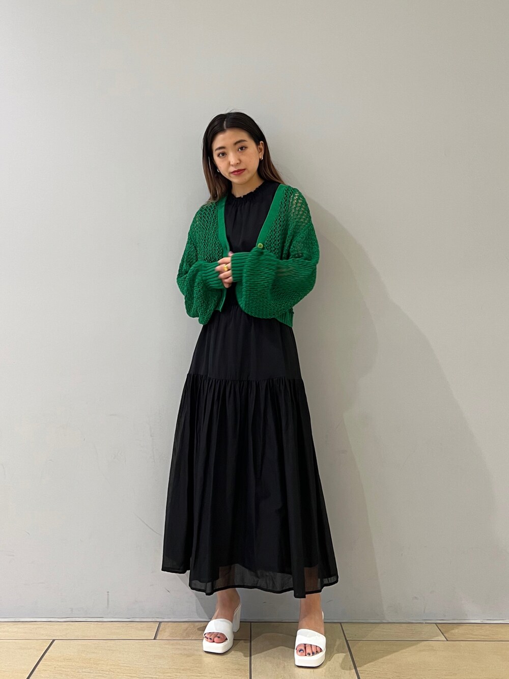 makoのワンピース「シャーリングコットンワンピース」を使ったコーディネート