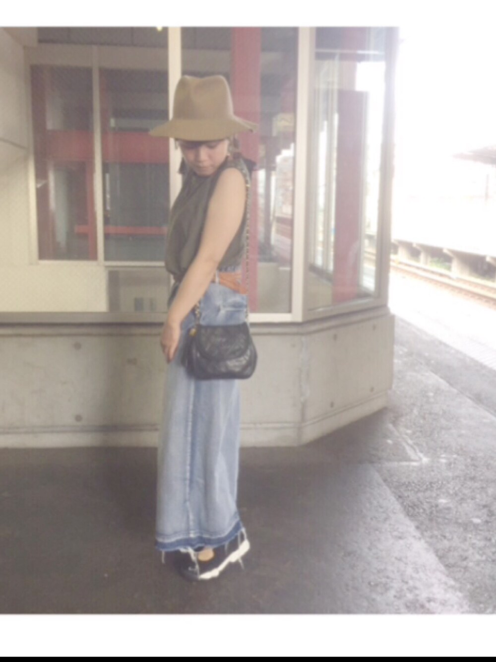 ま みのデニムパンツ「【mystic】デニムフリンジパンツ」を使ったコーディネート