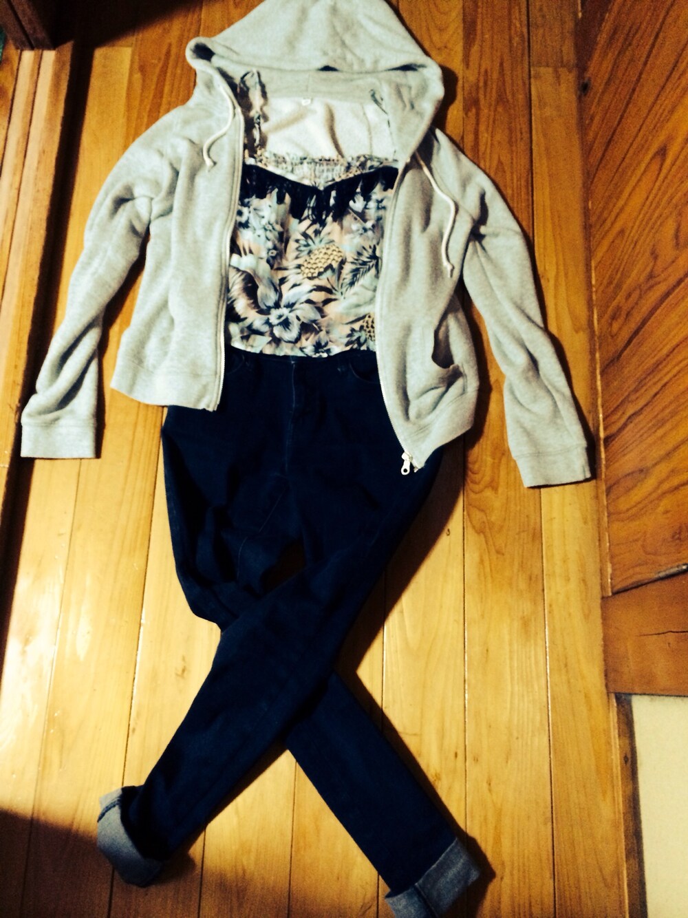 肌寒いのでパーカー。 これにスニーカー合わせでも可愛いかな、と。