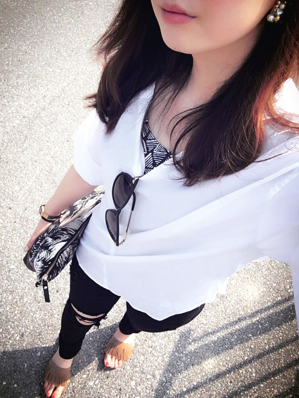 色々あって、 今とても仮面ライダーアマゾンな気持ち…🙉💔 でも午後からお一人様満喫してきました😂 カラオケフリータイム🎤→三日月氷菓店🍧→GODIVA🍫 一人最高〜〜!😜💗 結婚?出来ないんじゃない、しないんです!! ……嘘ですゴメンナサイ😫 でも一人行動好きなんですよね。 そして知らないおじちゃんとかおばちゃんと仲良くなっちゃう。笑 【コーデの話】 今日も朝から暑くて溶けそうだったので、モノクロ気味だけど、ホワイトをベースに。。 タンクトップ×ダメージデニムでも、だらし無く見せないように、タイプライターシャツで、オトナチック。笑 夏真っ盛りだけど、頭の中はもう秋支度始めてるちゃんまみでした🙋.。oO((ベロアのキャミ、メタリックなワイドパンツ、コーデュロイのキャップ! 欲しいの沢山!!!🙈💕))