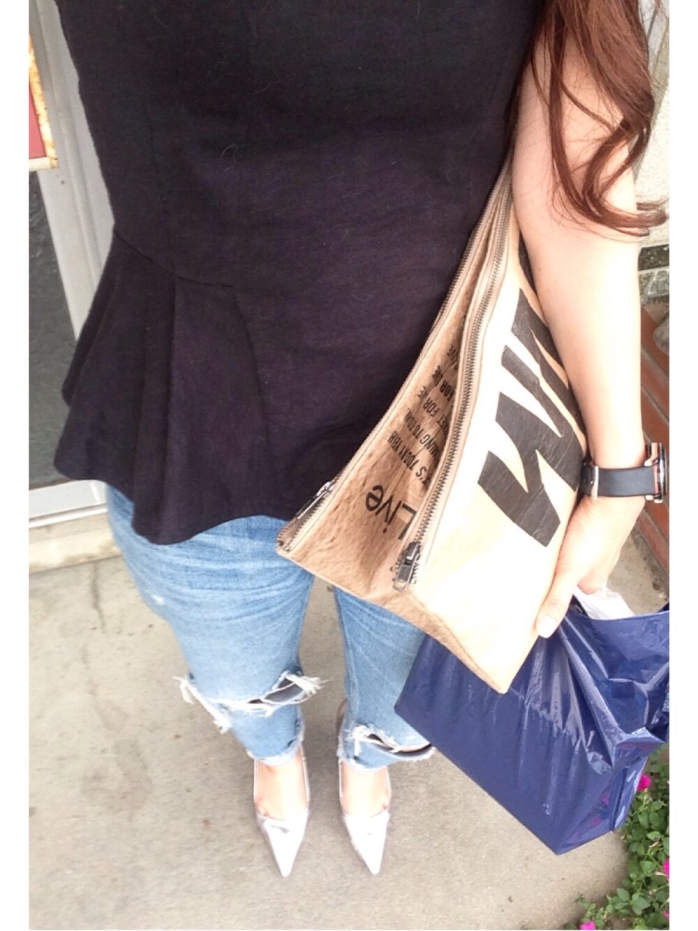 ノースリのペプラムトップスは 去年の夏moussyで買ったもの♥︎ ペプラムでガーリーにしつつ パンツでかっこよさプラス‼︎ クラッチはMATATABIとmoussyコラボの ペーパークラッチ♥︎ だんだん味出てきた〜♪♪