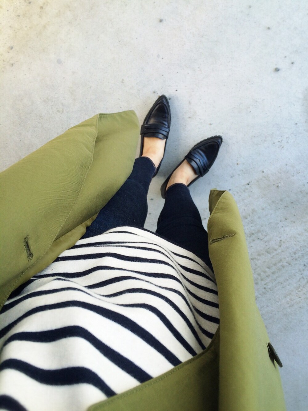 All moussy🙌 この前買ったロング丈のルーズトレンチ初おろし😘 中はシンプルに ボーダーカットソーにスキニー💫💫 bagはNIKEのジムサックでした💕