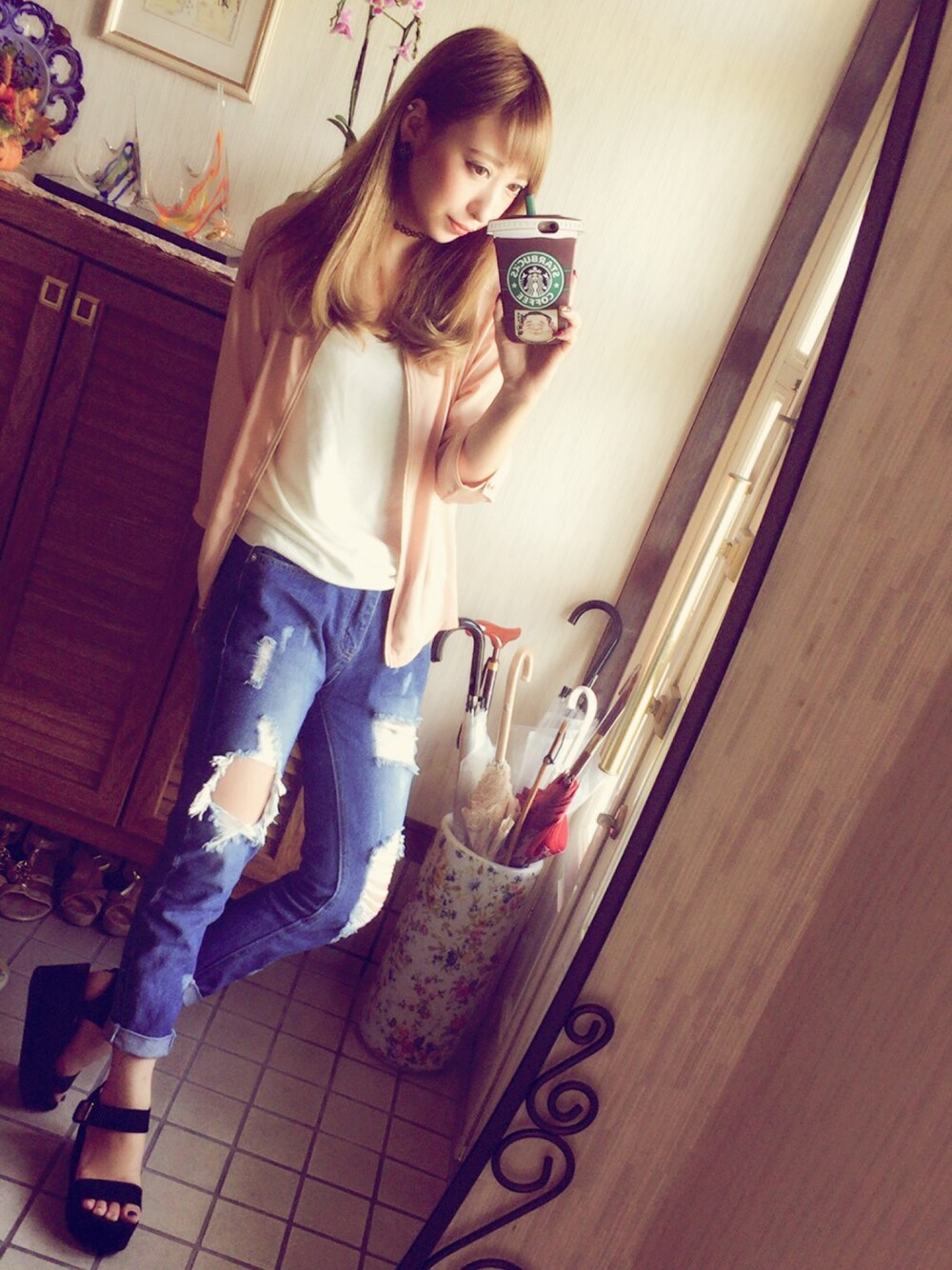 やんす。のノーカラージャケットを使ったコーディネート