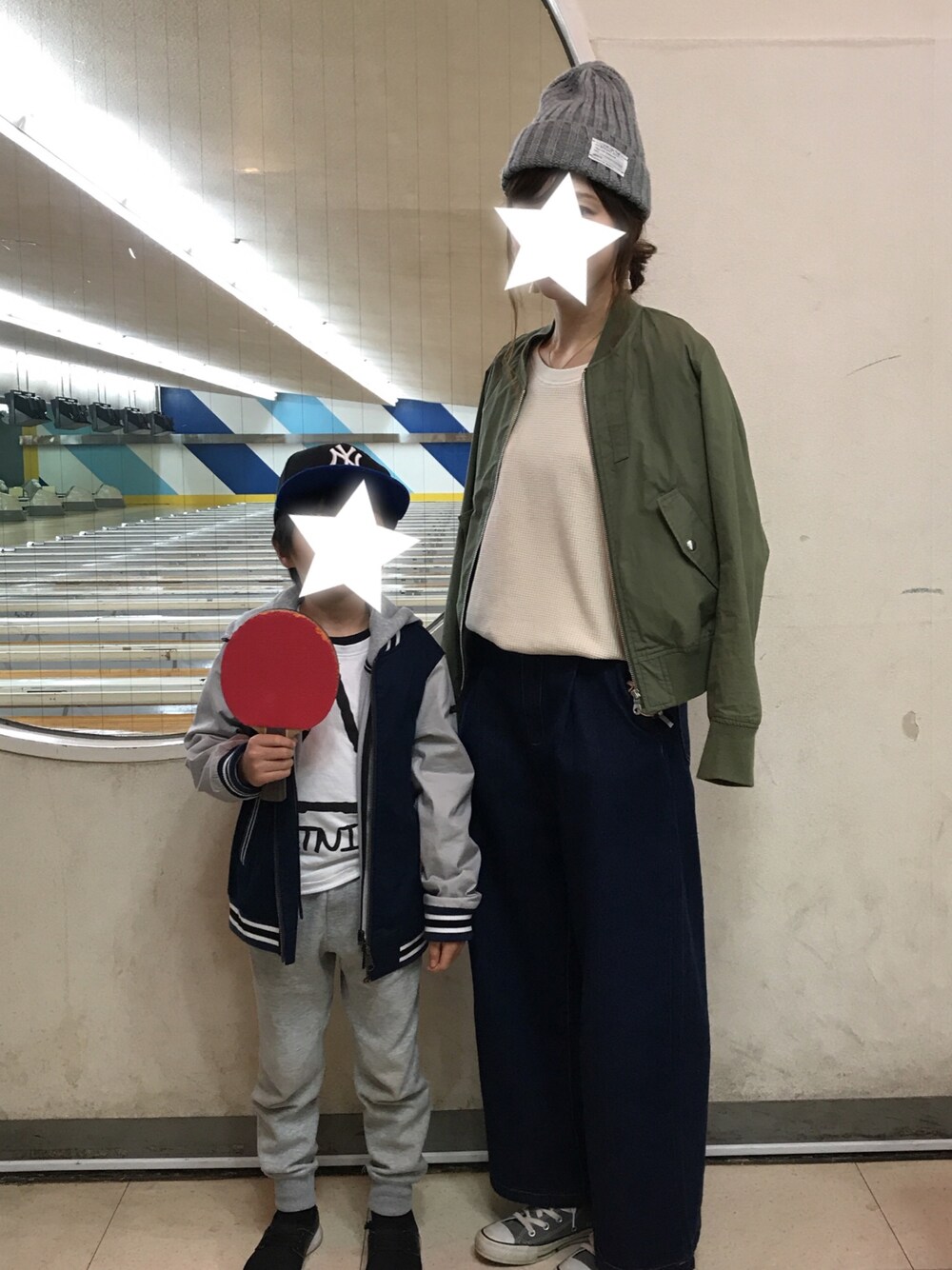 今日は卓球へ🏓 写ってる次男は卓球やらず(笑) 肩掛けしてポッケに手入れたら腕ない人になってしまった😅