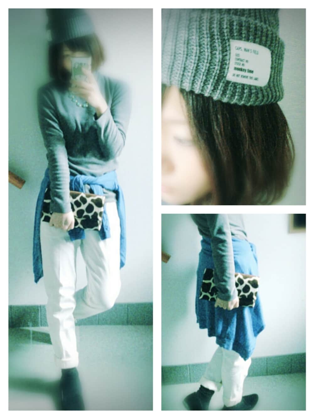 2014.02.12 トップス ▷UNIQLO カーディガン ▷UNIQLO パンツ ▷g.u. クラッチバッグ ▷CROON A SONG ニット帽 ▷MONKEY TIME 白のテーパードチノパンツで 少し、春気分をプラスしてみました。 青のカーディガンとクラッチバッグの キリン柄を主役に後はモノトーンに。 (ニット帽はグレーで色違いのもの) 早くアウター着なくても いいくらいの気温にならないかなぁ。