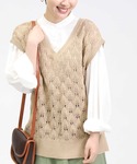 まあちゃみのベスト「【HONEYSUCKLE ROSE】透かし編みベスト」を使ったコーディネート