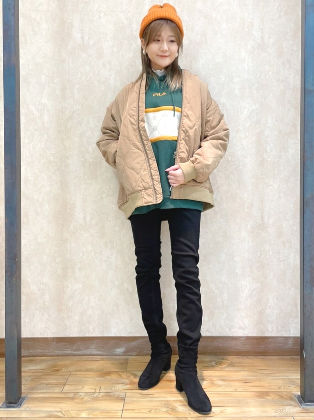 詳細いつもご覧頂きありがとうございます😄 ❤️アイテムのは❤️ ↓ アイコンをタッチ →🖥️マークをタッチ 私の着用コーデがご覧になれます☺️ Right-onのオンラインショップにいけますよ~✨ よろしくお願いします❤️ 🌼FILA カラー切替パーカー🌼 人気のビッグシルエット✨ 切り替え部分に総柄を施し高級感を演出 ✨ グリーンにイエローカラーが可愛いです🥰 羽織っているアウターは 🌼キルティングブルゾン🌼 シンプルなデザインながら、暖かくて軽い✨ ポケット付きで機能性も高いです✨ シンプルなデザインでなので✨ どんなコーデにも合わせやすです👍 大人カジュアルにも抜群☺️✨ さらっと羽織れるので1着あると便利です🌼 今回あわせたボトムはSOMETHINGの 🌼BODYFIRE スキニー🌼 綿にこだわったSOMETHINGのBODY FIRE✨ 肌面にあたる部分(ヨコ糸)に超熟コットンを使用することで、綿本来の保温機能を高め、暖かい✨ ふわふわな穿き心地も、甘く撚られた超熟コットンによるもの✨ トレッチ性が昨年の物よりUPし、より穿きやすくアップデートしました⤴️⤴️ SOMETHING売上№1シルエットSKY38と同シルエット☺️ ベーシックなシルエットなので、トレンドに左右されることなく⾧く愛用して頂けるアイテムになっています☺️👍 とっても温かくて最高です🥰 よかったら是非あわせてみてくださいませ~☺️👍 🎈着用アイテムはこちらから購入できます🛒 ↓↓↓↓