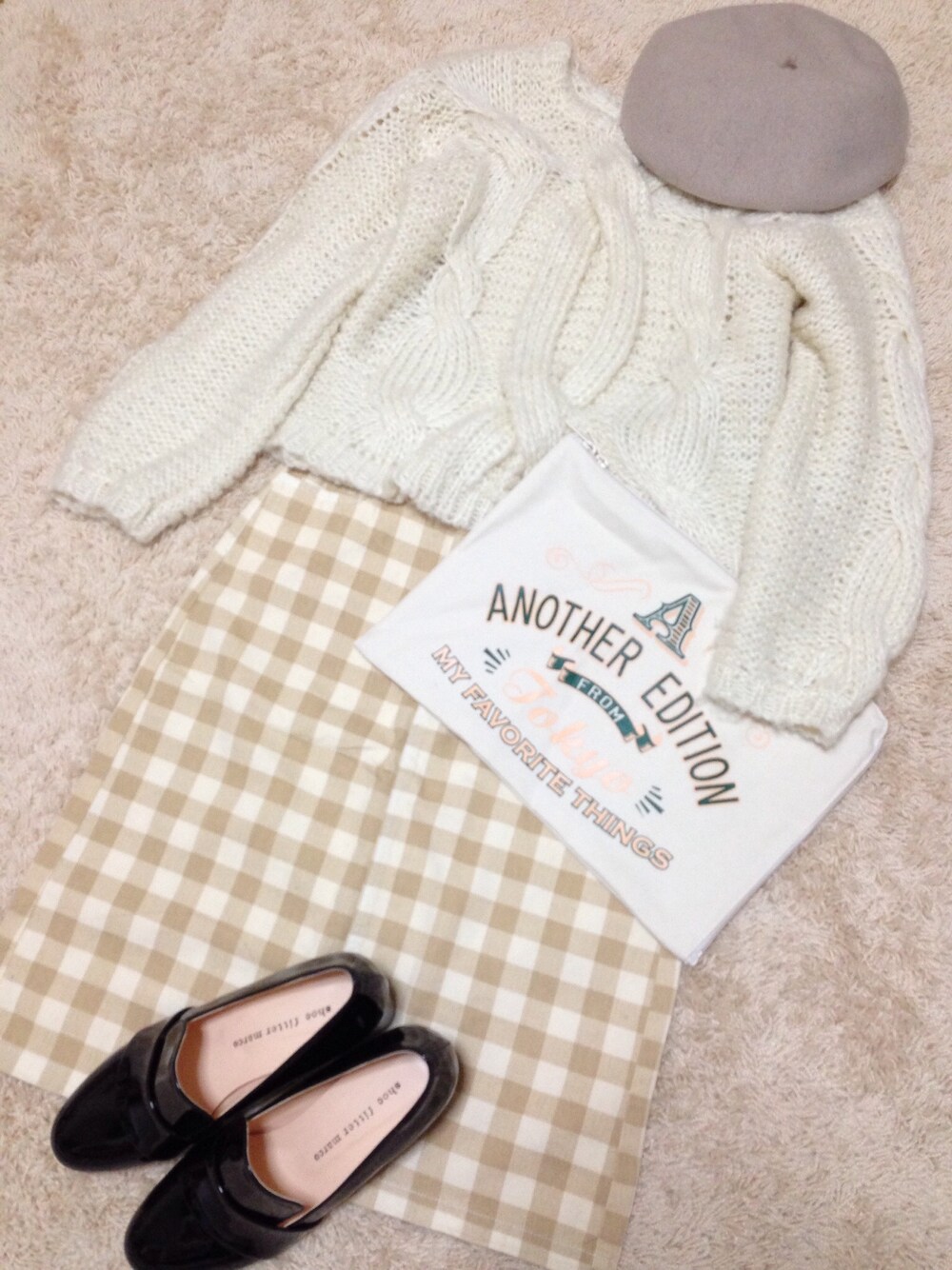 *Holiday ニット…MAJESTIC LEGON スカート…mystic ベレー帽…override クラッチ…Another Edition シューズ…DHOLIC ギンガムチェックが主役の春を意識したコーデにしてみました*。