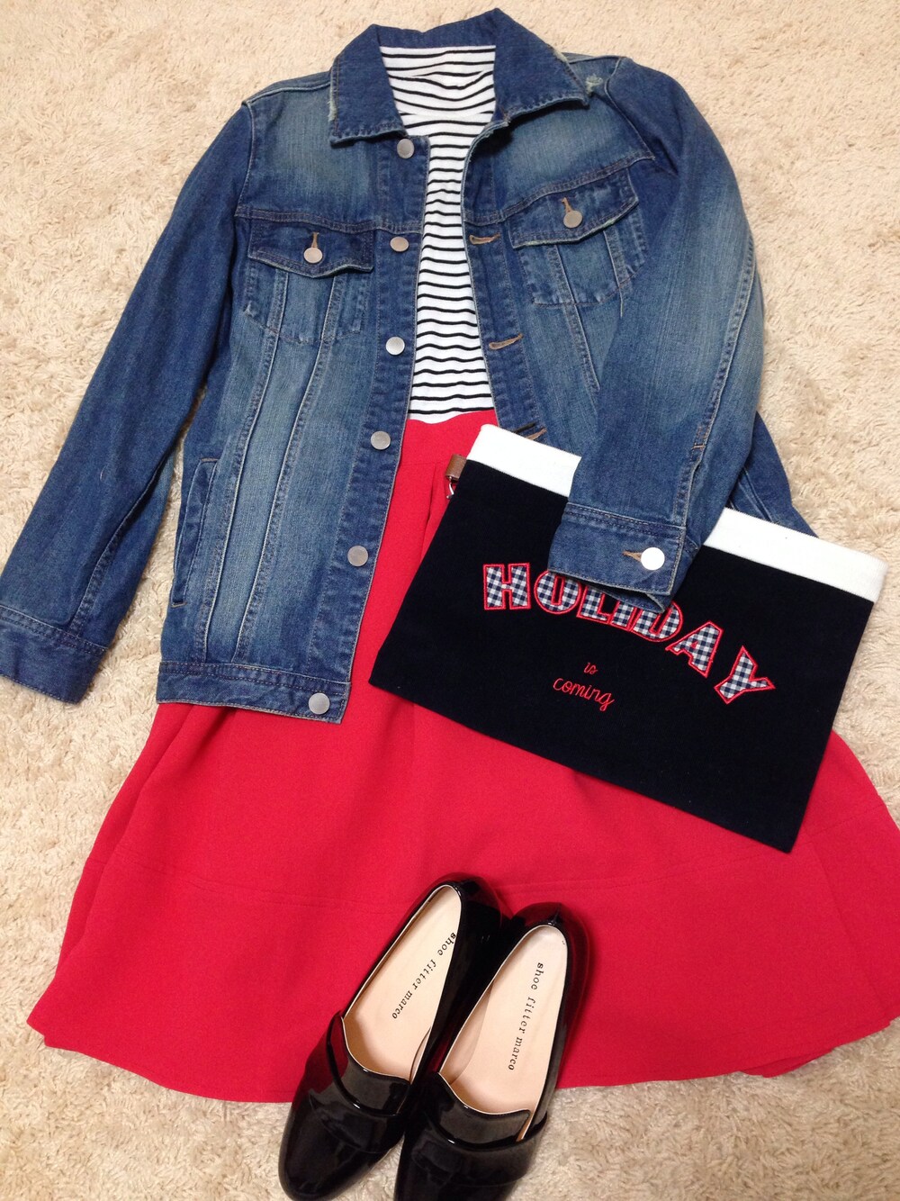 *Holiday トップス…LOWRYS FARM デニムジャケット…mysty woman スカート…DHOLIC シューズ…DHOLIC クラッチ…casselini x Rina Tanaka 足元には白い靴下合わせたら可愛いかな♡?
